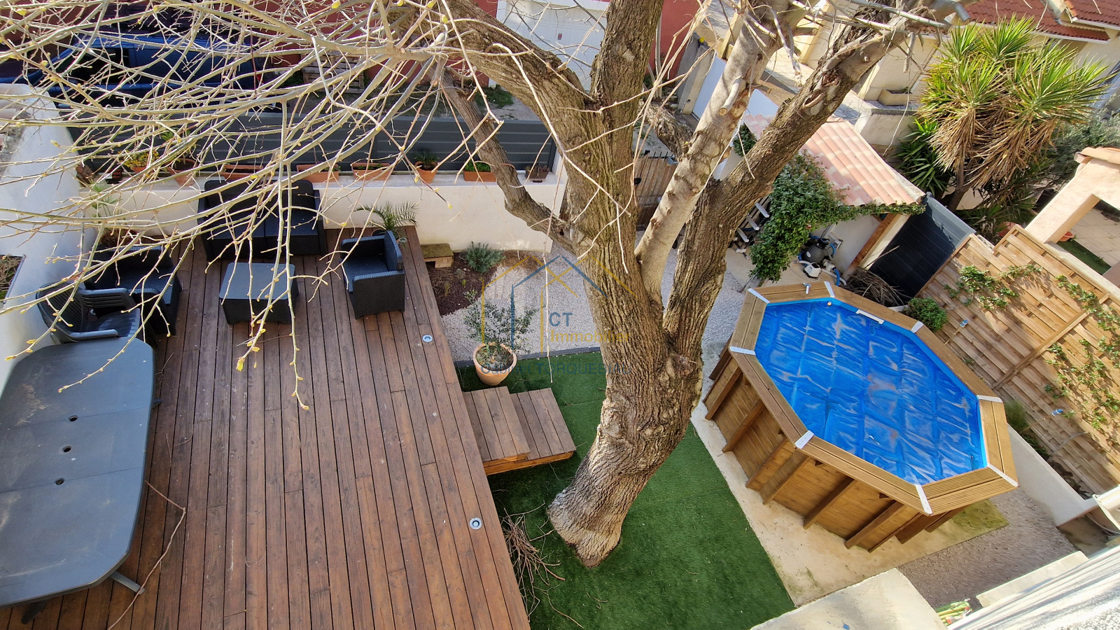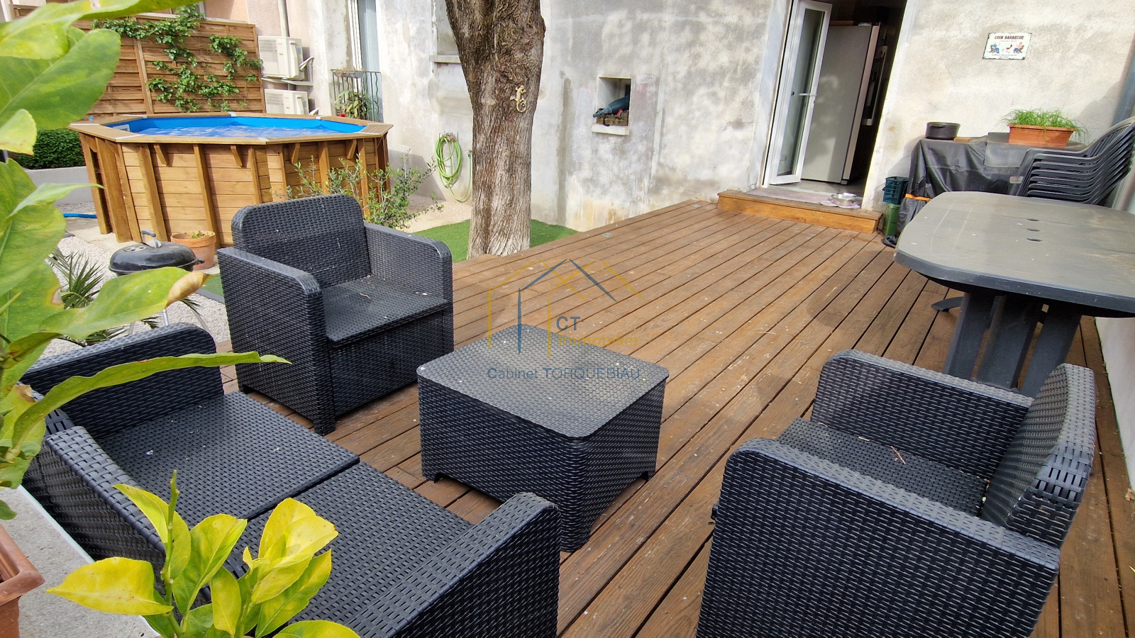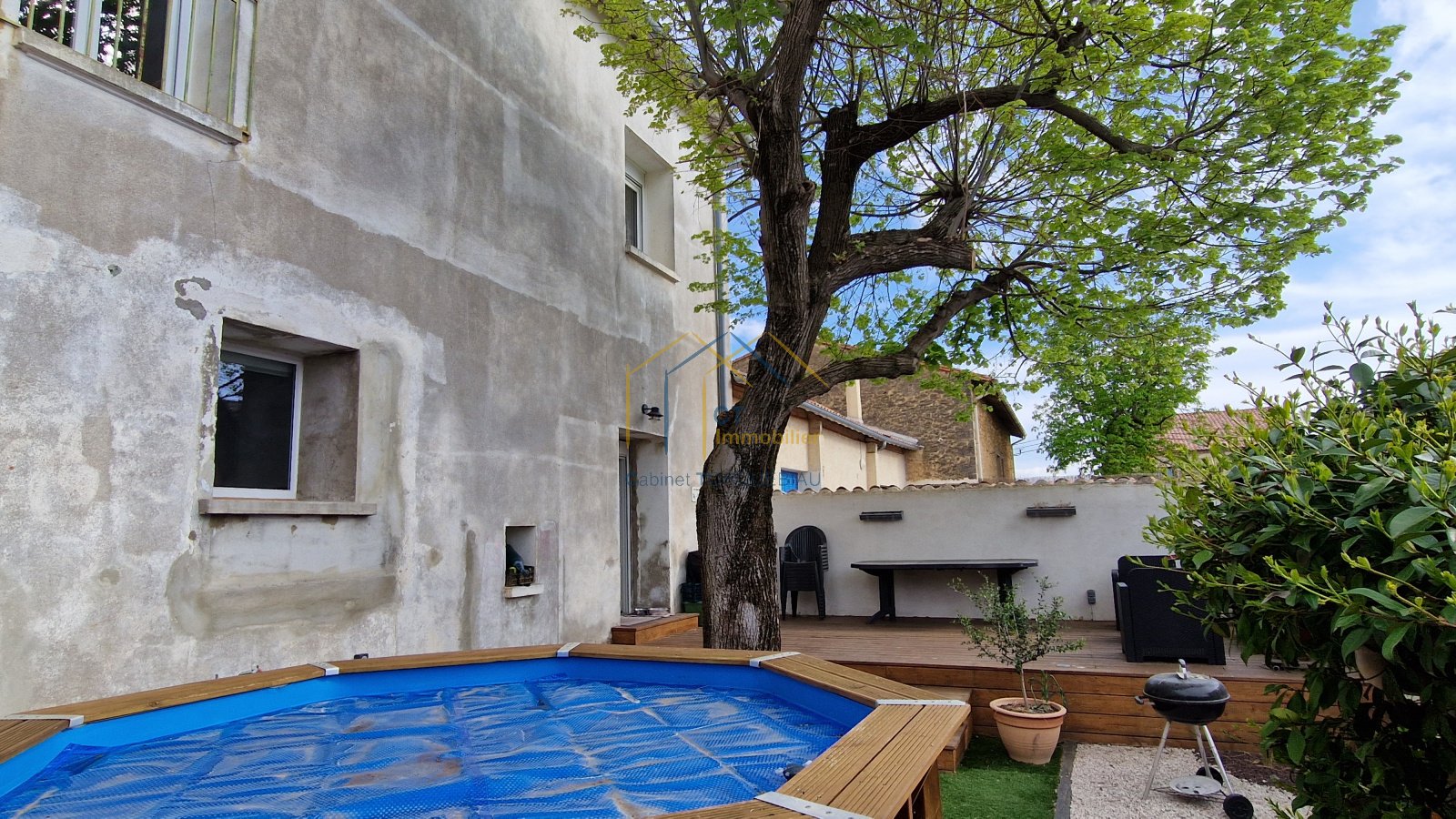 A vendre proche GIGNAC avec accès facile à l'A750 - Coup de coeur assuré pour cette grande maison de village rénovée de plus de 140m² + garage avec son jardin ombragé et intimiste sur l'arrière + terrasse en bois et piscine hors-sol.