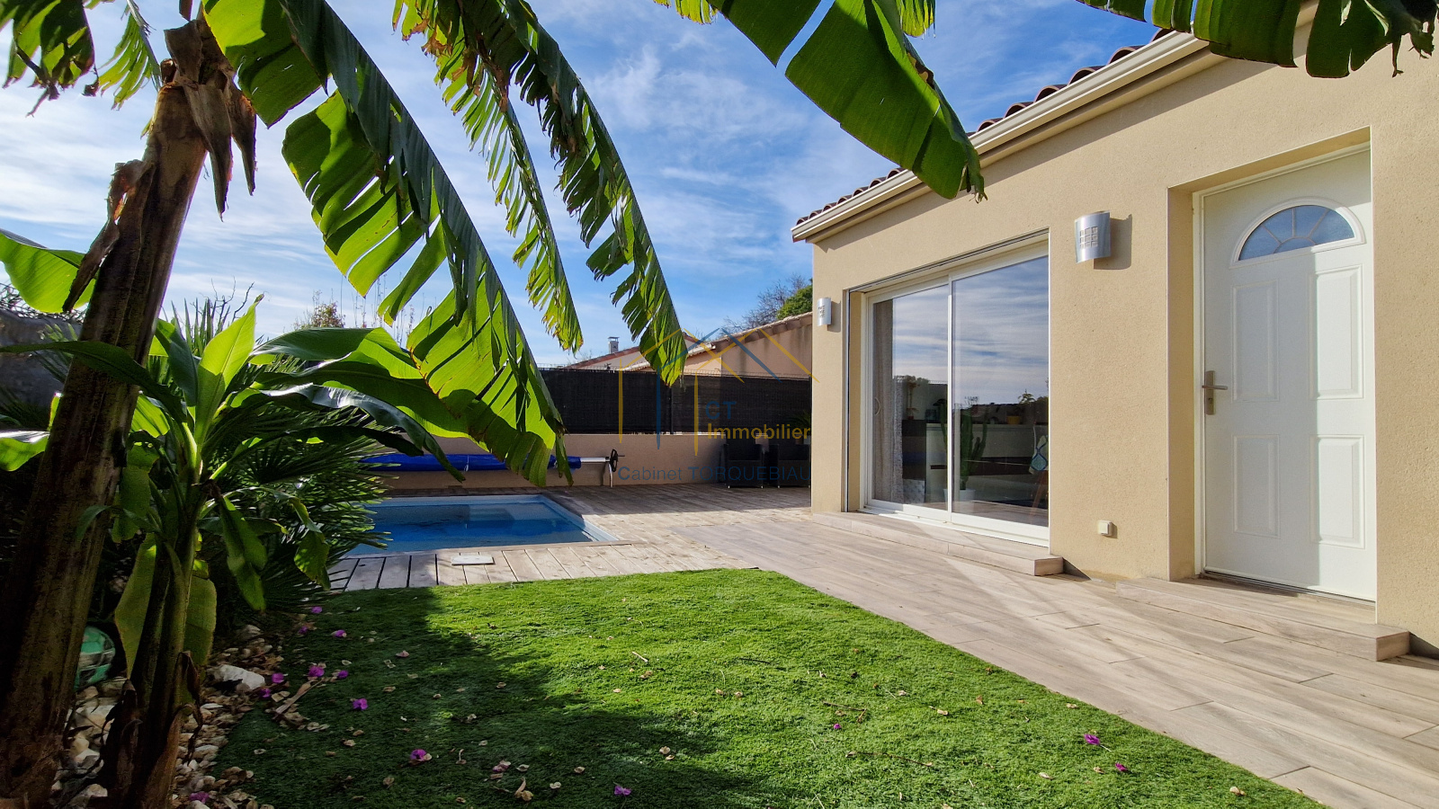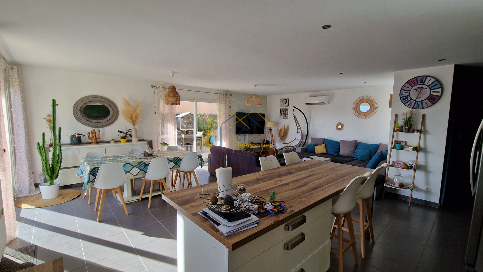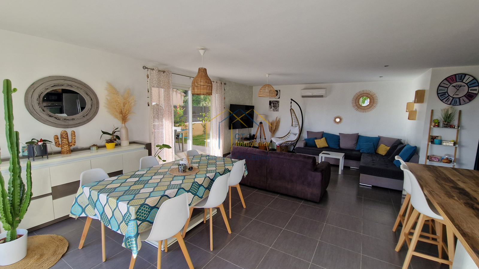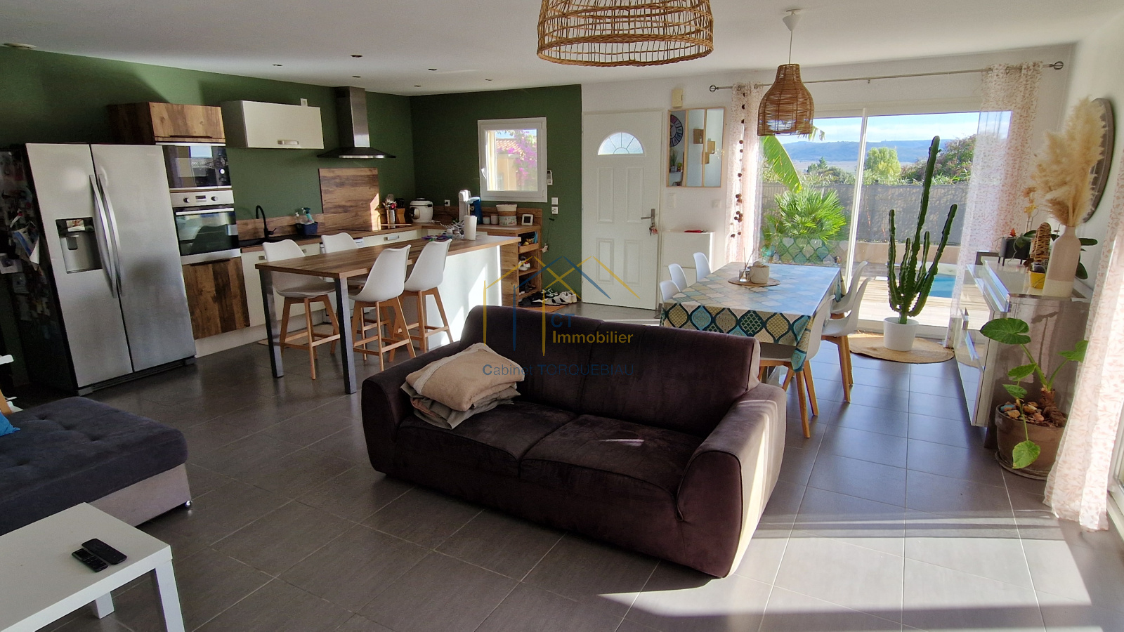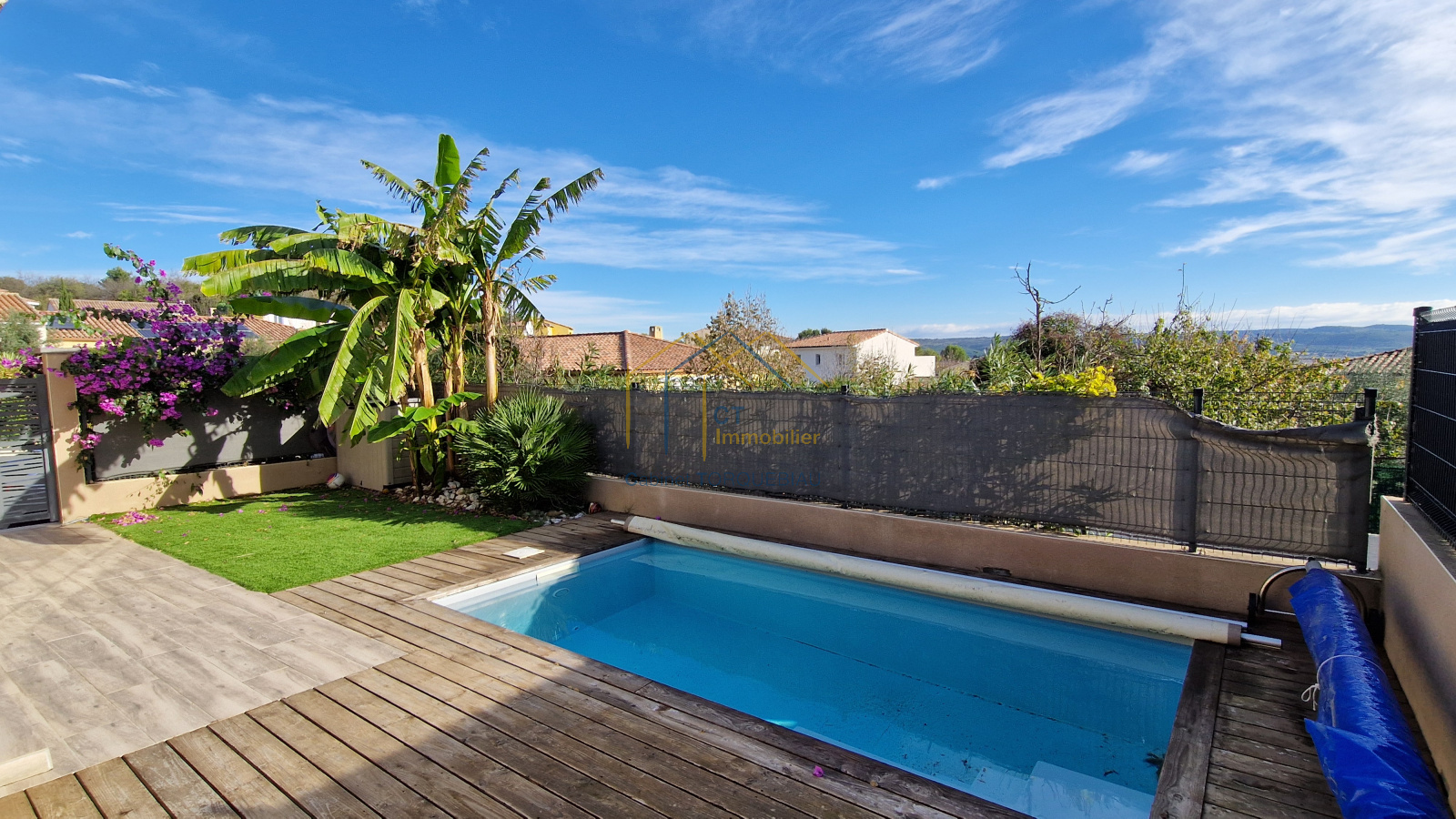 A vendre secteur GIGNAC, dans un village avec toutes commodités et bénéficiant d'un accès rapide aux axes autoroutiers - Edifiée sur une parcelle de plus de 350m², superbe villa de plain-pied de type 4 baignée de soleil et bénéficiant d'une jolie vue dominante avec piscine - en excellent état pour une surface habitable de 111m² + garage 19m² et une place de parking se composant d'une grande pièce principale avec cuisine aménagée récente de 54m² donnant sur une pergola bioclimatique, de trois chambres de 11 à 16.5m², d'une grande et belle salle de bains avec baignoire et douche - Climatisation réversible, menuiseries alu et pvc double vitrage + volets roulants électriques, fibre...- Le jardin est entièrement clôturé et paysagé avec piscine - Environnement très calme en bout d'impasse - Coup de cœur assuré - Pour plus de renseignements et une visite contacter CT immobilier