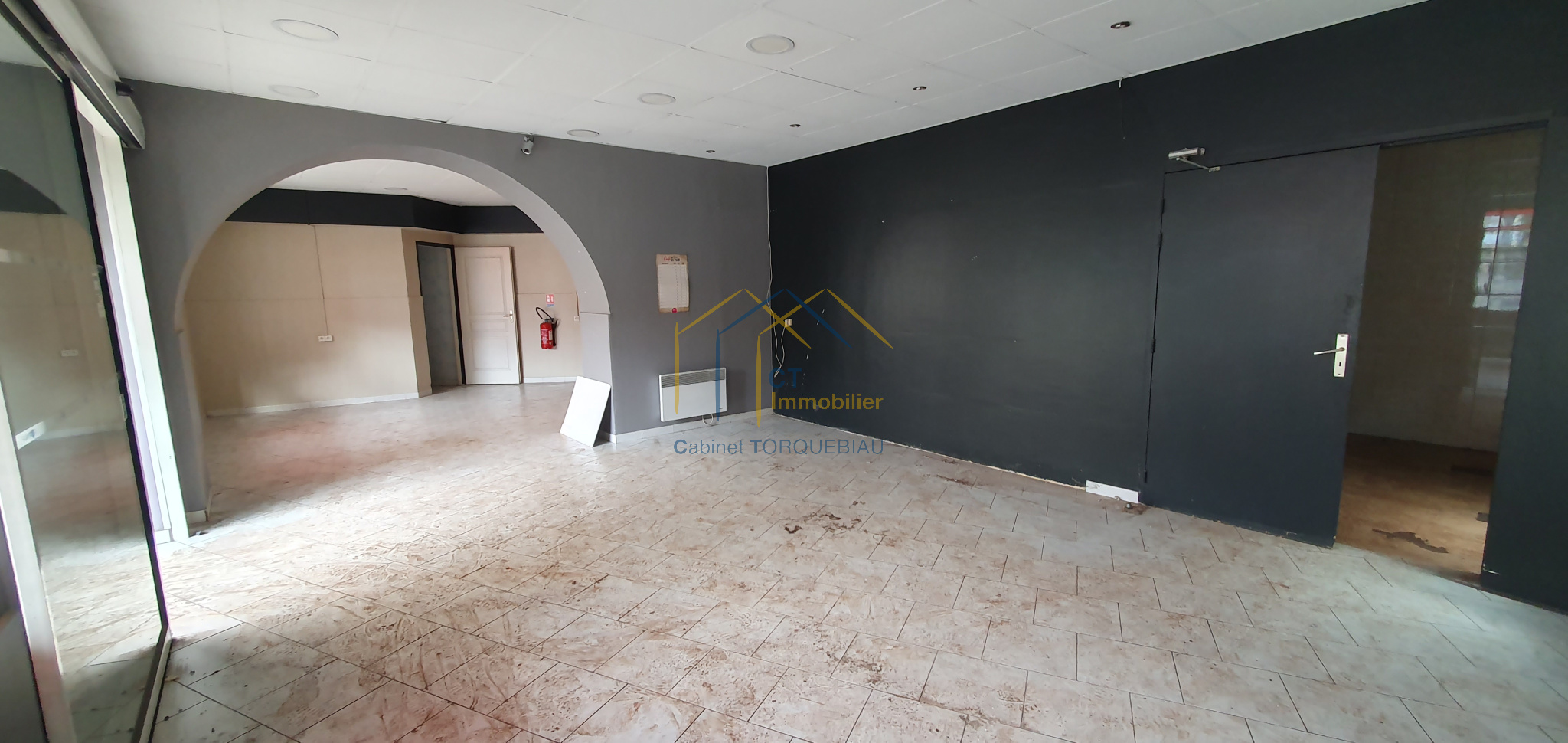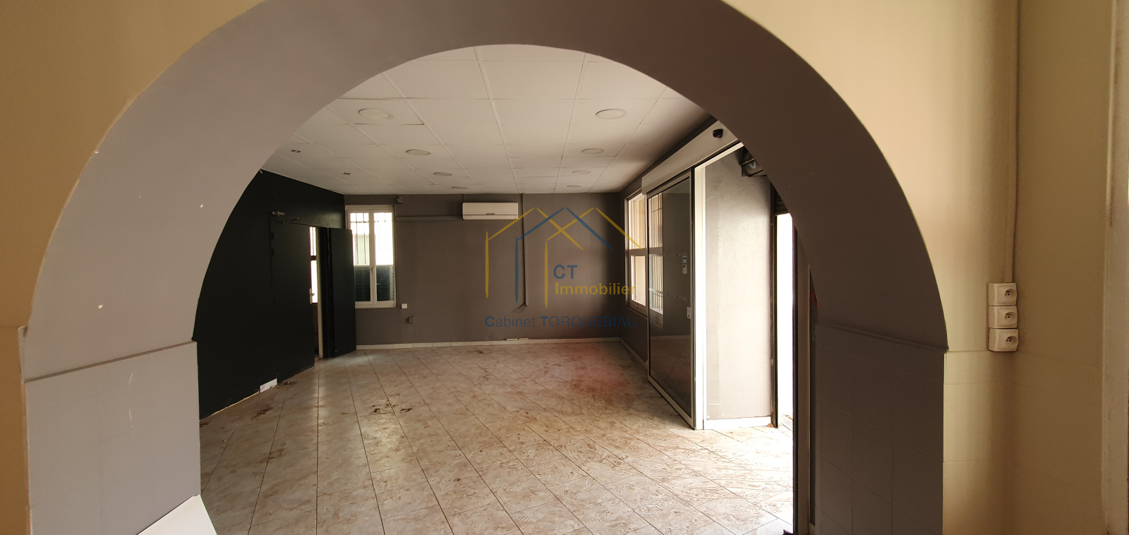 A louer à 2 pas du centre de GIGNAC avec une visibilité importante - Local d'environ 127m² avec petit devant de porte se composant de deux grandes pièces, d'un toilette et d'une cave en sous-sol - Pour plus de renseignements contacter CT immobilier