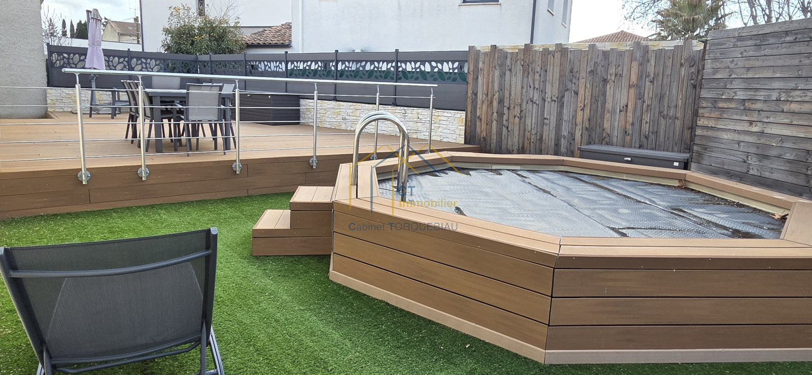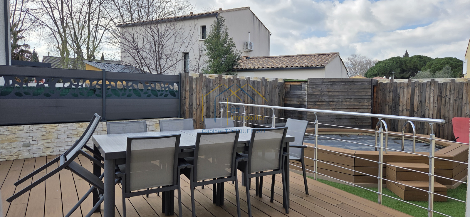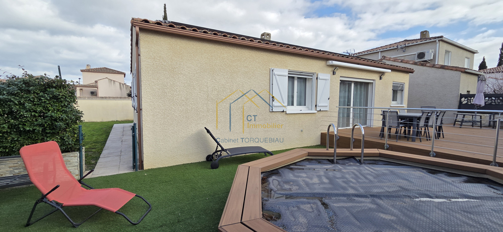 A vendre en EXCLUSIVITE sur GIGNAC, dans un environnement calme, à proximité des écoles et du centre ville - Ravissante villa de type 4 de plain-pied d'environ 90m² habitables + une pièce d'appoint de 20m² isolée et chaffée aménagée dans le garage - Edifiée sur une parcelle ensoleillée de 460m² avec grande terrasse en bois, piscine hors-sol, pelouse et branchement à l'eau du canal.