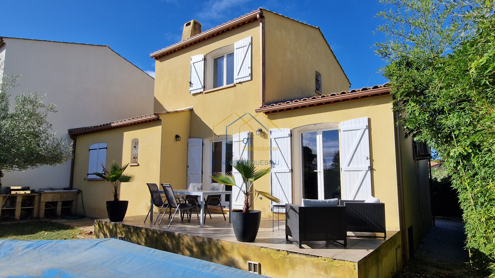 A vendre sur GIGNAC - Idéalement placée au centre de GIGNAC à 2mn à pieds de la place principale et de toutes commodités - Belle villa de type 5 de 114m² habitables édifiée sur une parcelle paysagée de 335m² avec piscine HS, abri bois - Construite en 2007, l'habitation se compose: