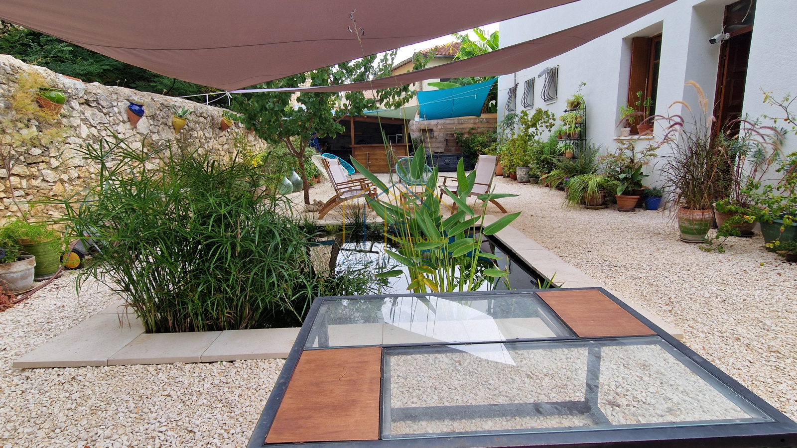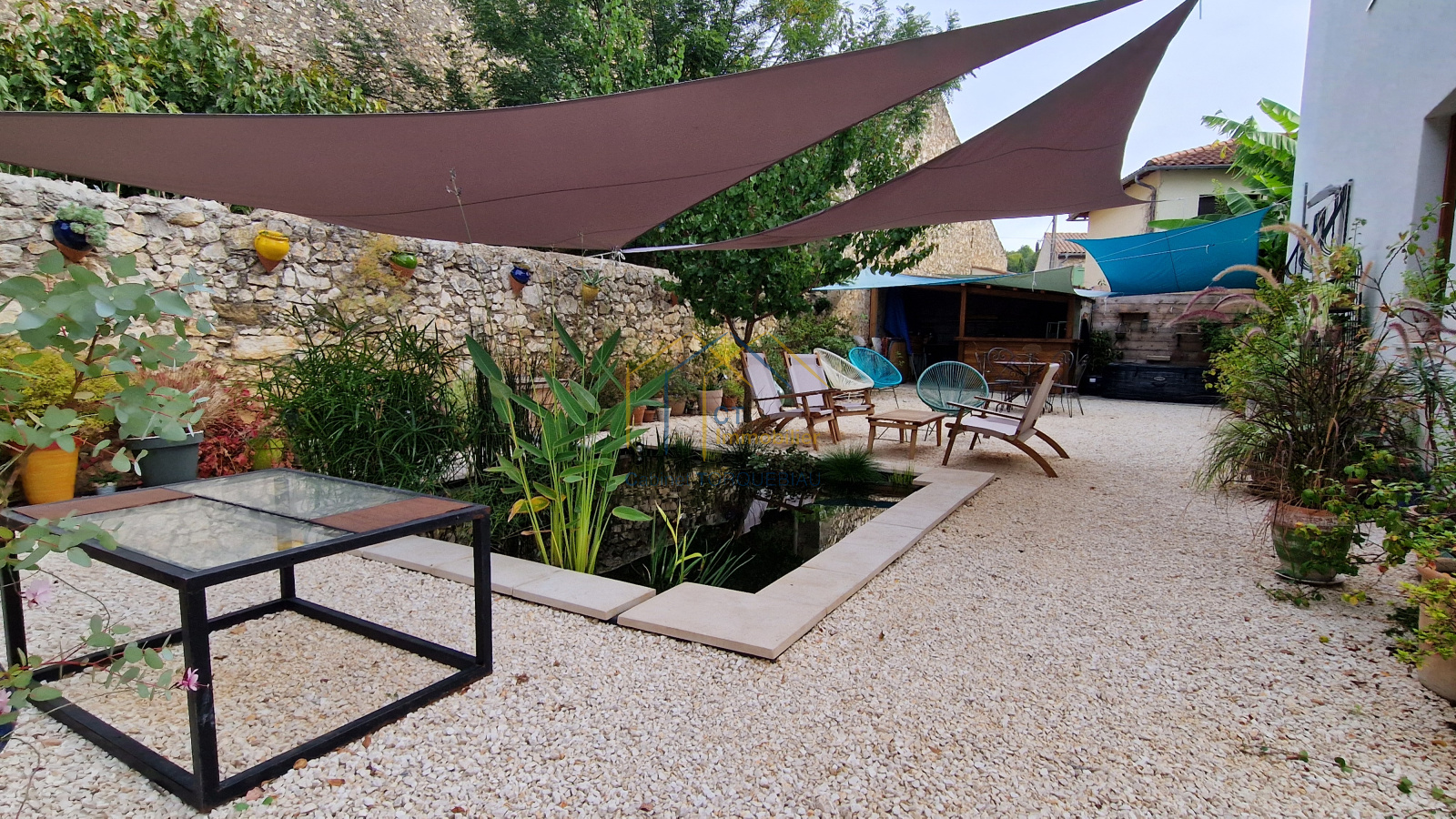 A vendre sur ANIANE - Grande villa traditionnelle de type 4 d'environ 100m² habitables avec au RDC: deux garages pour une surface d'environ 85m² (idéal artisan, bricoleur..) + un bureau et une pièce d'appoint - Terrain clos et joliment aménagée de 404m² avec bassin, cuisine d'été et bénéficiant d'un branchement à l'eau du canal